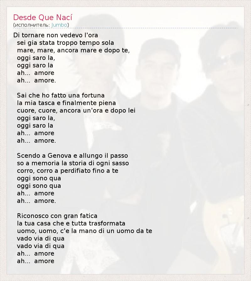 А как ты думаешь, о чем песня "Desde Que Nací" ?