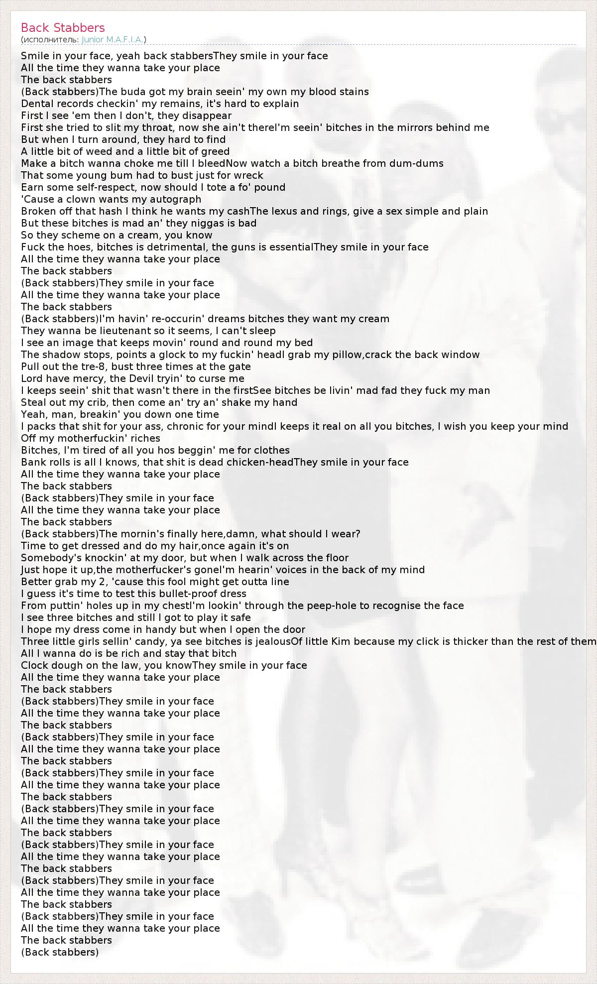 А как ты думаешь, о чем песня "Back Stabbers" ?