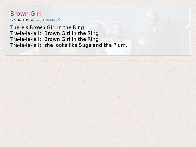 А как ты думаешь, о чем песня "Brown Girl" ?