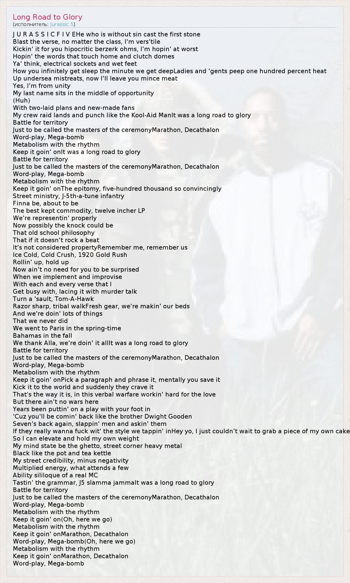 Tastin' the grammar, J5 slamma jammaIt was a long road to glory