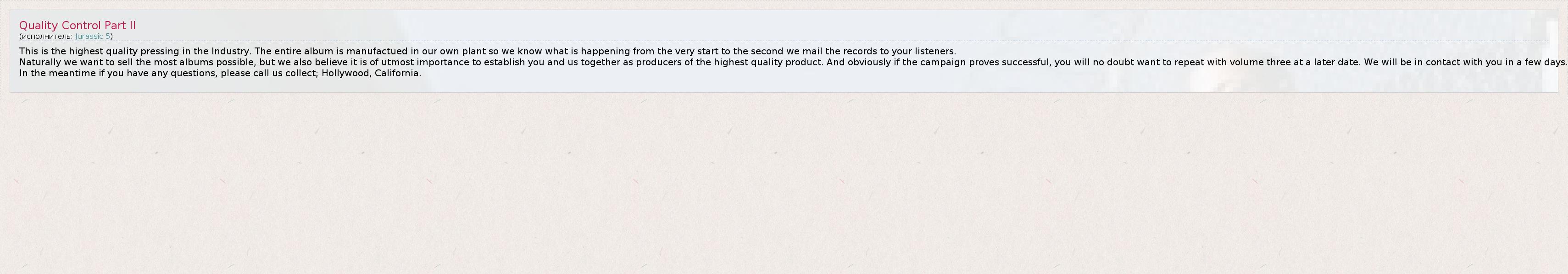 ГлавнаяИсполнителиJurassic 5Quality Control Part II