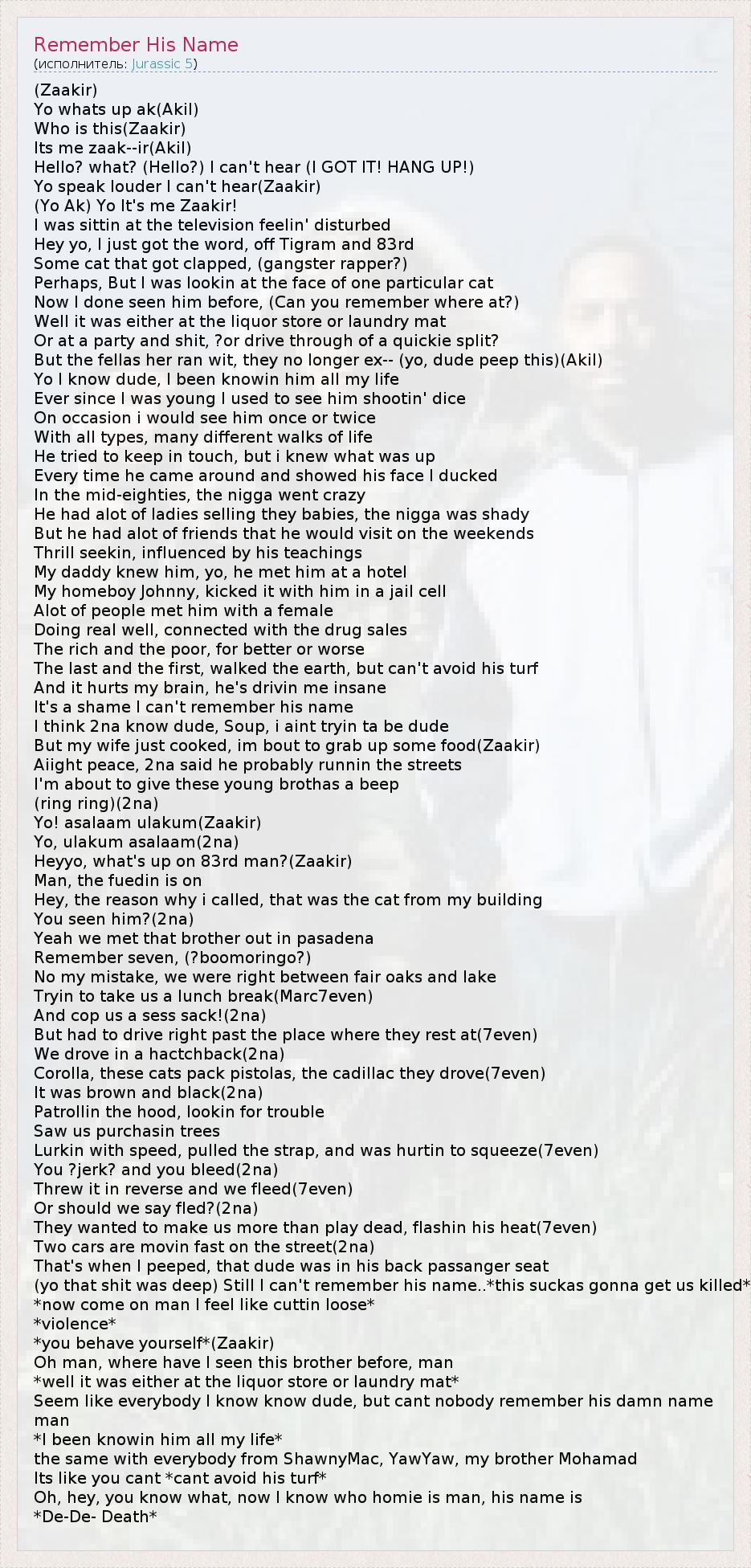(yo that shit was deep) Still I can't remember his name..*this suckas gonna get us killed*