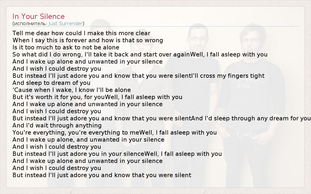 А как ты думаешь, о чем песня "In Your Silence" ?