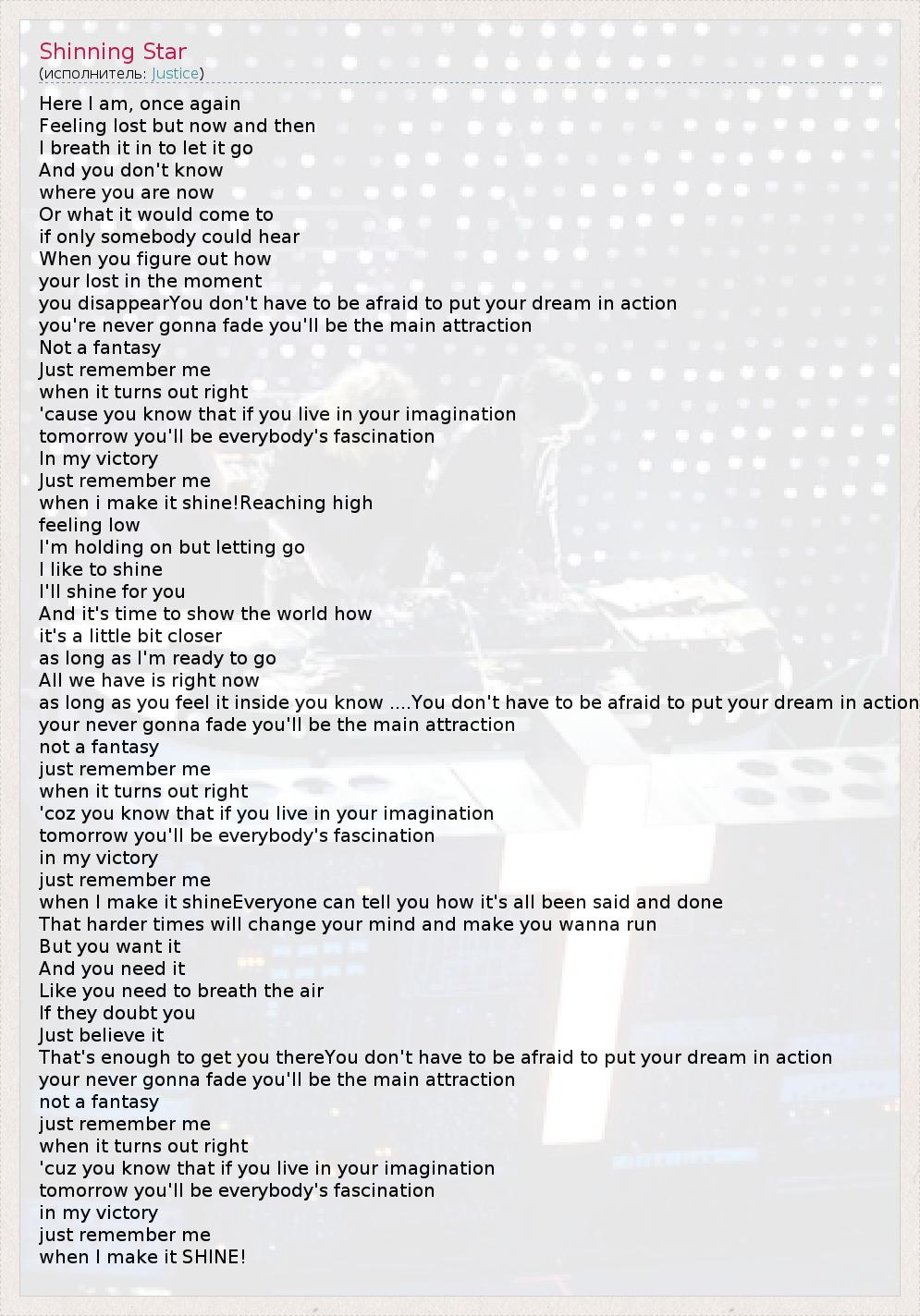 А как ты думаешь, о чем песня "Shinning Star" ?