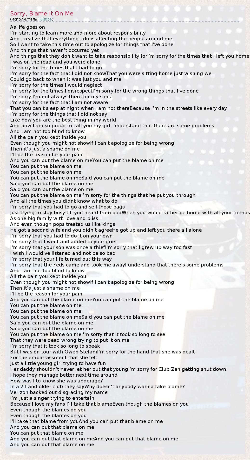 ГлавнаяИсполнителиJusticeSorry, Blame It On Me