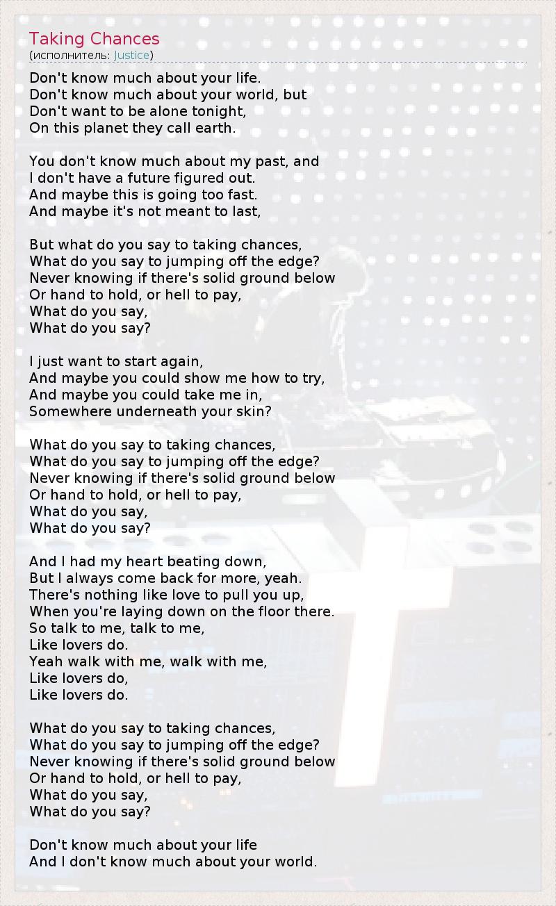 А как ты думаешь, о чем песня "Taking Chances" ?