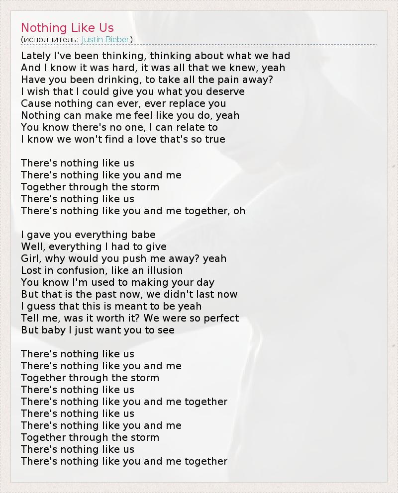 А как ты думаешь, о чем песня "Nothing Like Us" ?