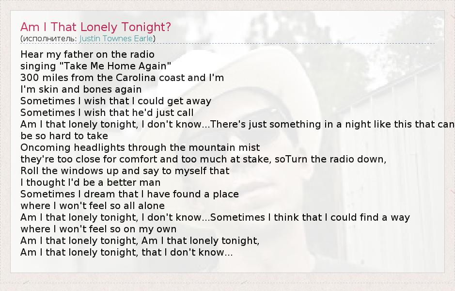 А как ты думаешь, о чем песня "Am I That Lonely Tonight?" ?