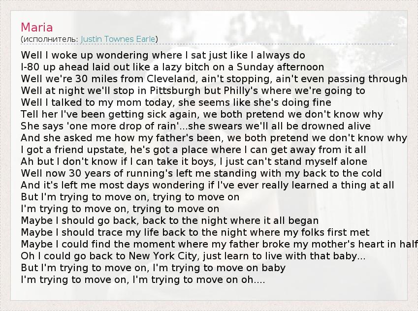 Это интересно:Если твой папа – Стив Эрл (Steve Earle), и тебя назвали в честь Таунса ван Зандта (Townes Van Zandt), было бы глупо становиться дальнобойщиком или дрессировщиком тюленей. Вот и поет Джастин кондовые американские песенки про любовь, родителей и ветер в прериях, что колышет кукурузу. В общем, блуждает где-то между традиционным кантри, американой, инди-роком, блюзом... продолжение
