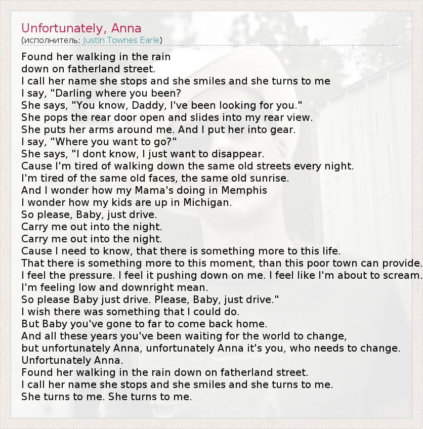 А как ты думаешь, о чем песня "Unfortunately, Anna" ?