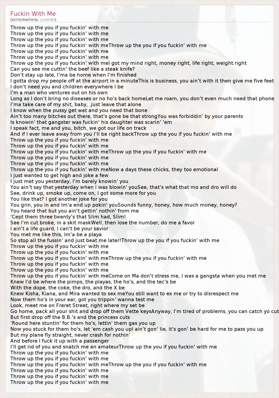So stop all the fussin' and just beat me later!Throw up the you if you fuckin' with me