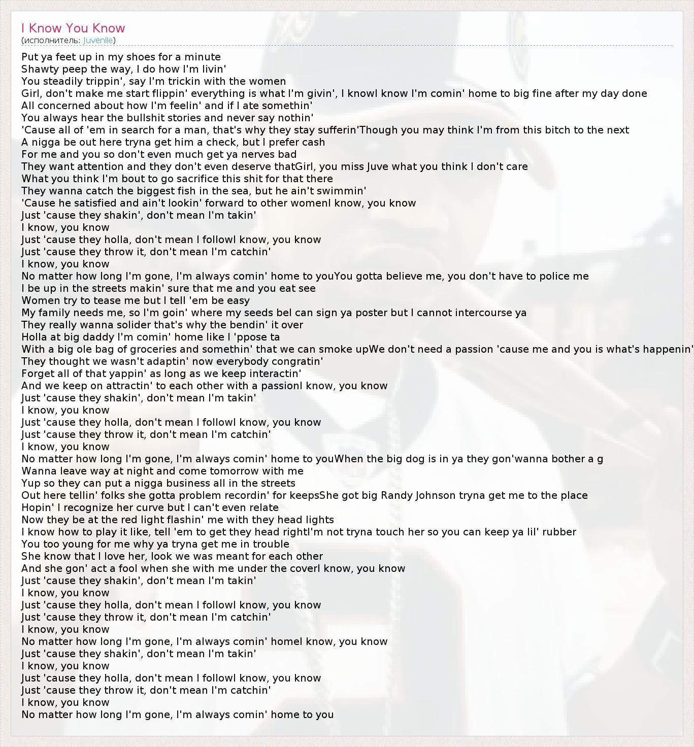 А как ты думаешь, о чем песня "I Know You Know" ?