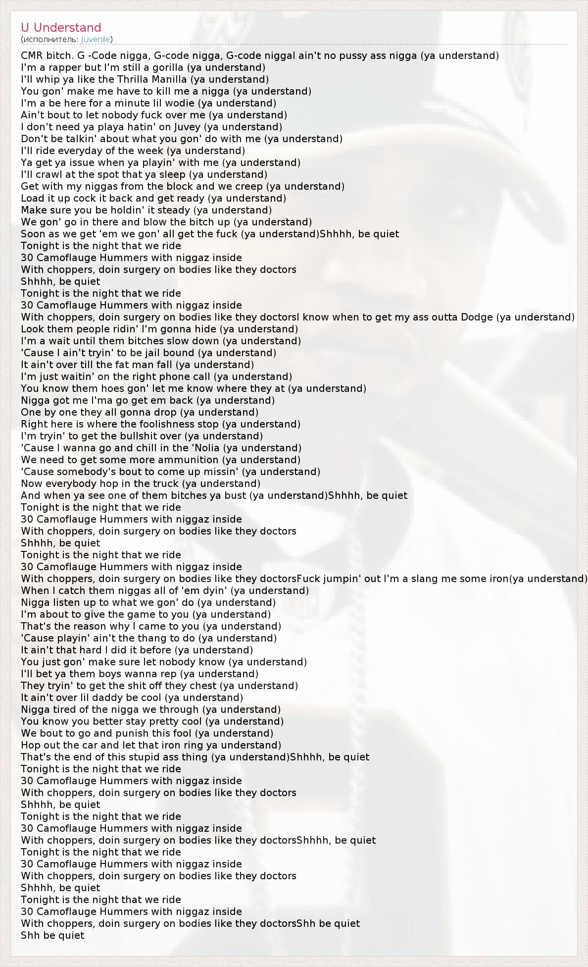 CMR bitch. G -Code nigga, G-code nigga, G-code niggaI ain't no pussy ass nigga (ya understand)