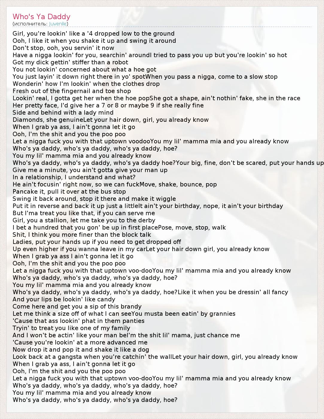 А как ты думаешь, о чем песня "Who's Ya Daddy" ?