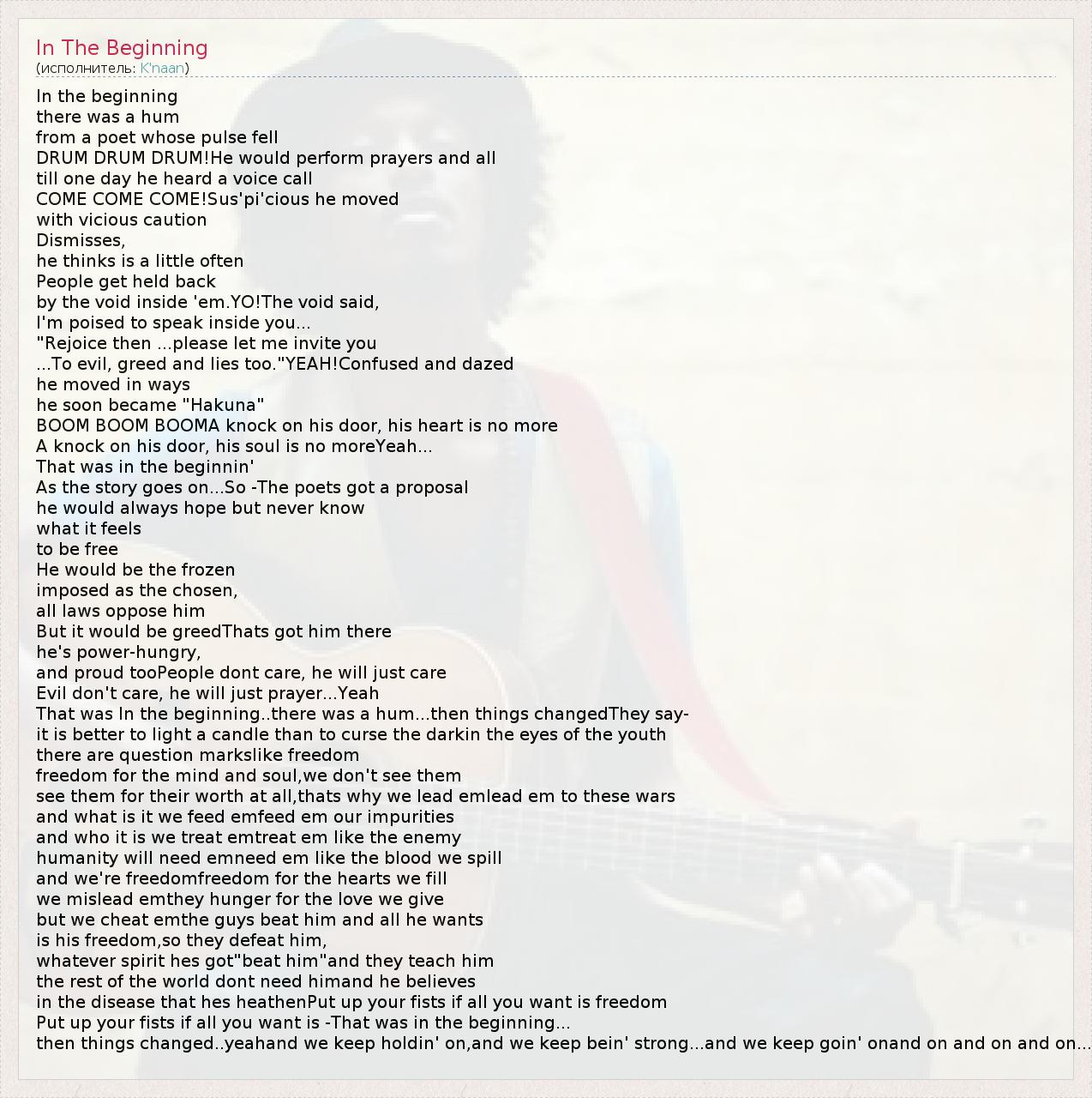 А как ты думаешь, о чем песня "In The Beginning" ?