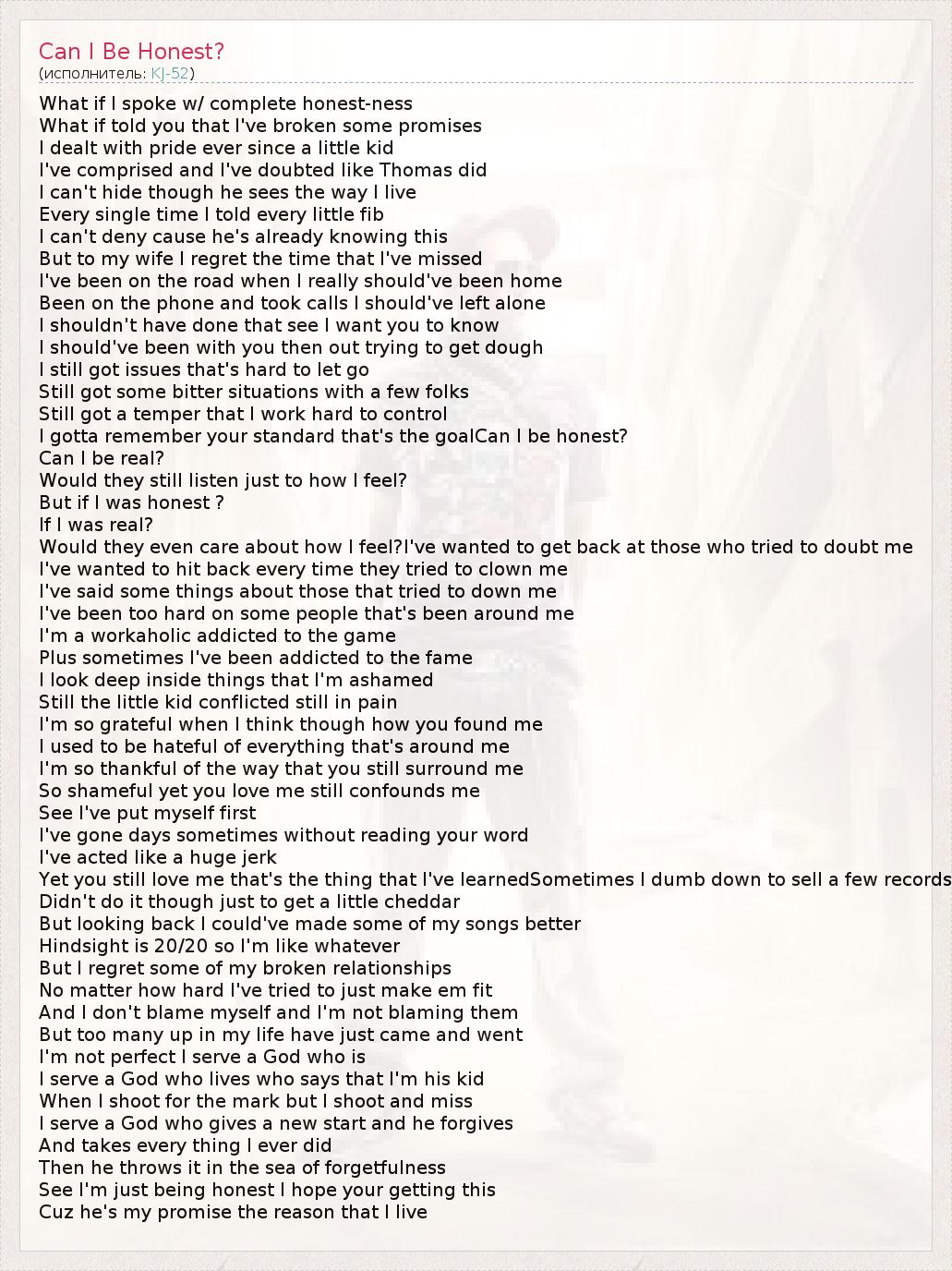 А как ты думаешь, о чем песня "Can I Be Honest?" ?