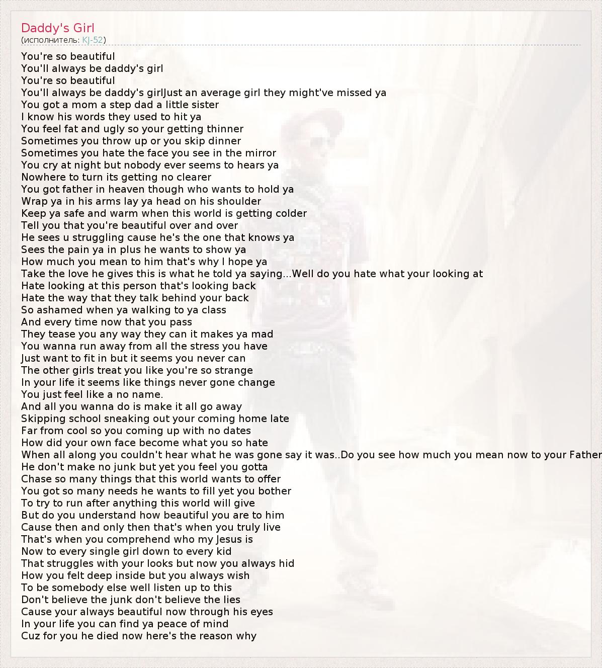 You'll always be daddy's girlJust an average girl they might've missed ya