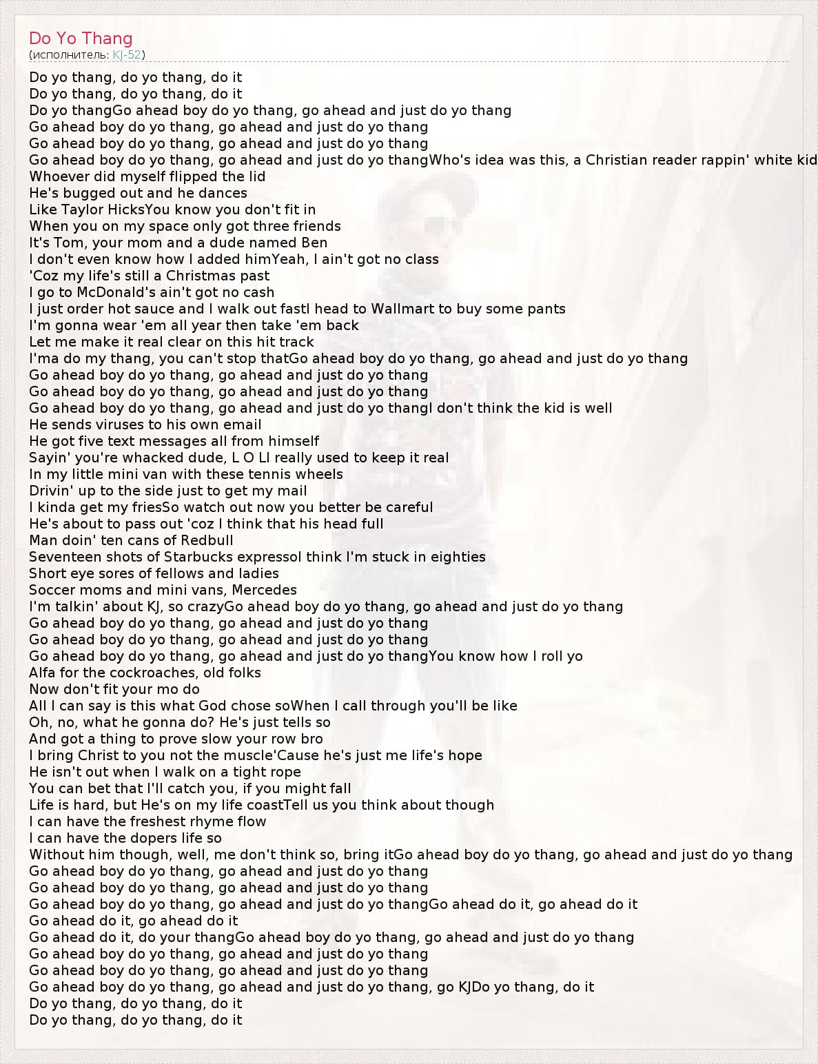 Go ahead boy do yo thang, go ahead and just do yo thang, go KJDo yo thang, do it