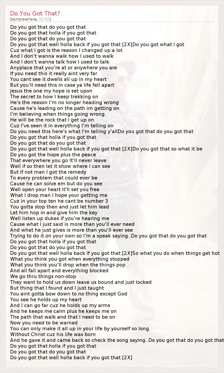А как ты думаешь, о чем песня "Do You Got That?" ?