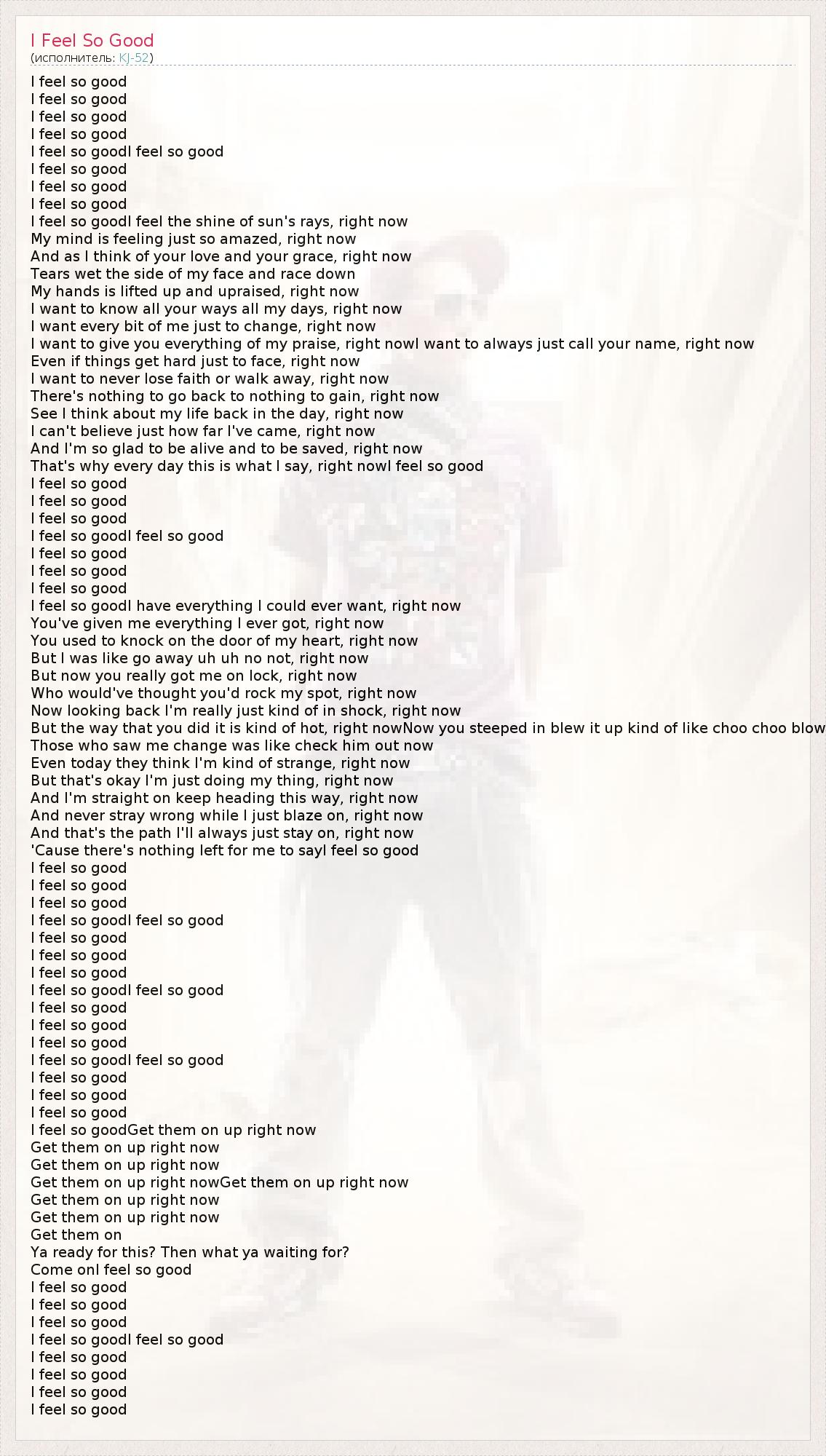 I feel so goodGet them on up right now