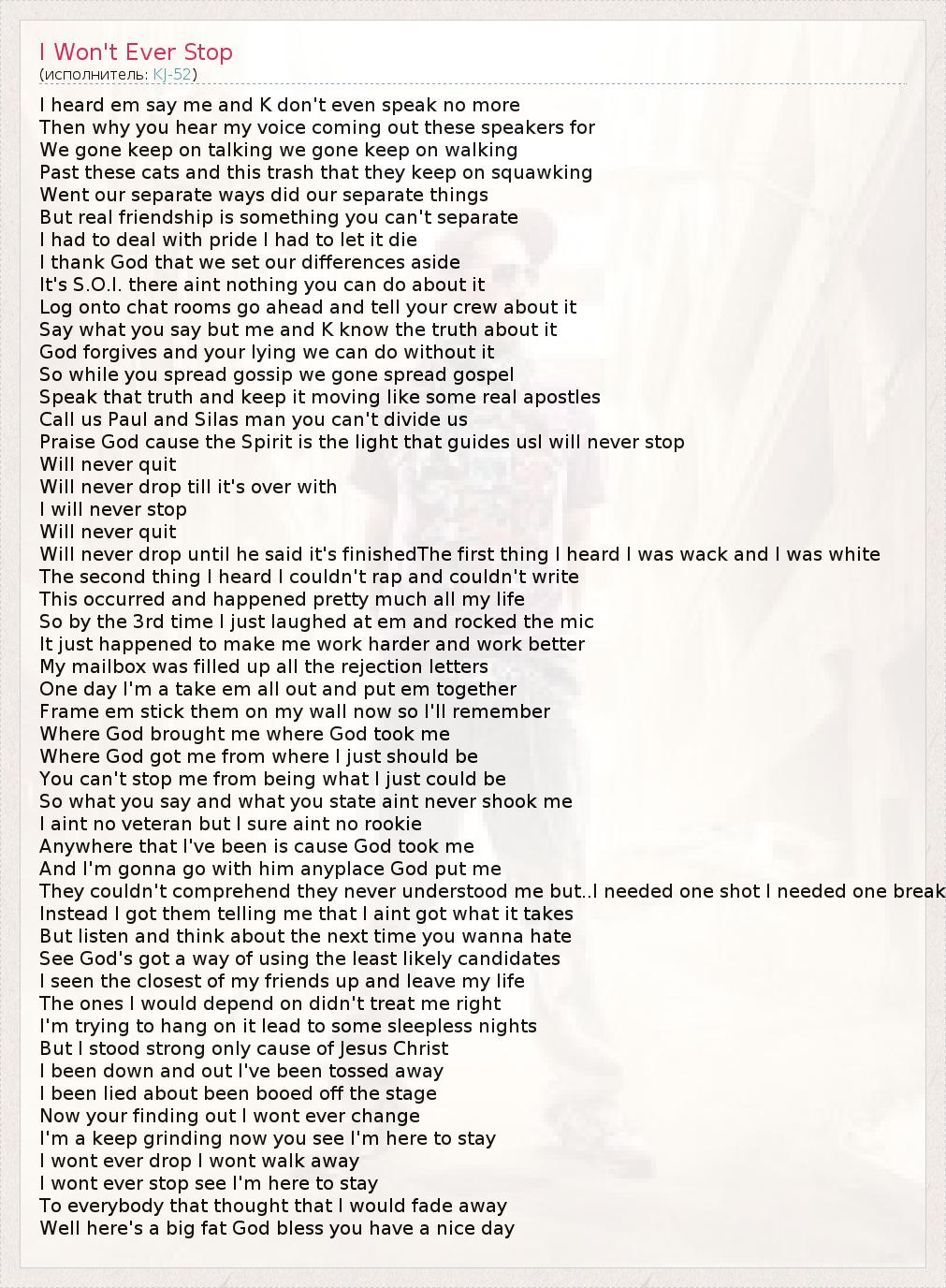 А как ты думаешь, о чем песня "I Won't Ever Stop" ?