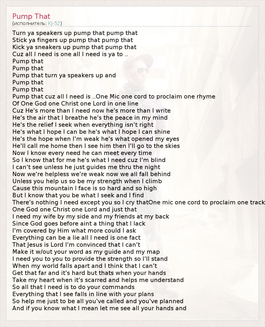 Pump that cuz all I need is ..One Mic one cord to proclaim one rhyme