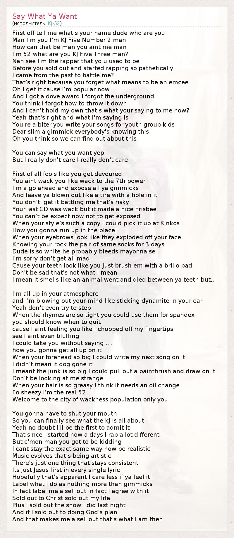 А как ты думаешь, о чем песня "Say What Ya Want" ?