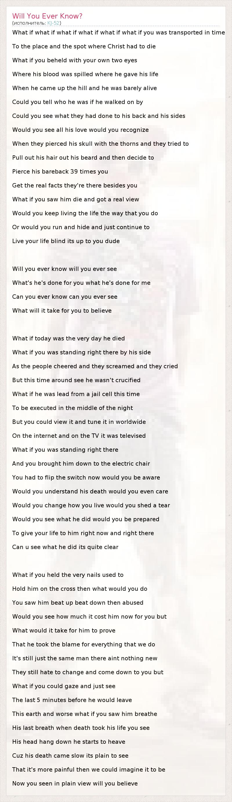 А как ты думаешь, о чем песня "Will You Ever Know?" ?