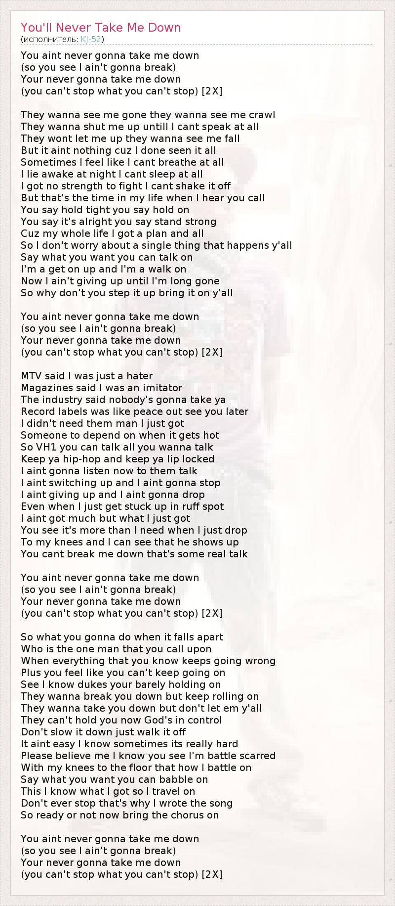 ГлавнаяИсполнителиKJ-52You'll Never Take Me Down