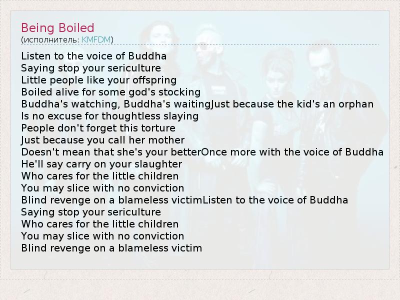 А как ты думаешь, о чем песня "Being Boiled" ?