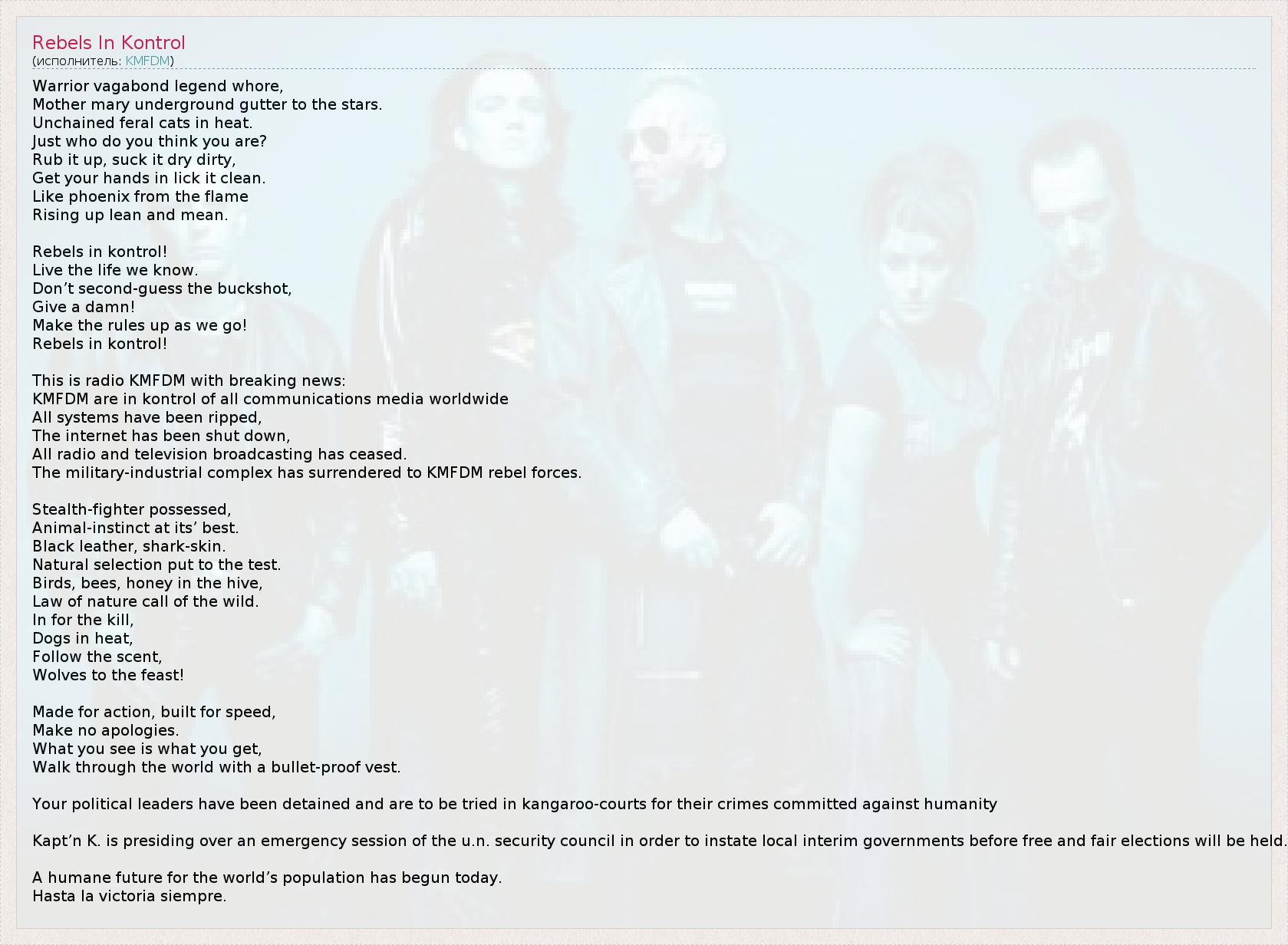 А как ты думаешь, о чем песня "Rebels In Kontrol" ?