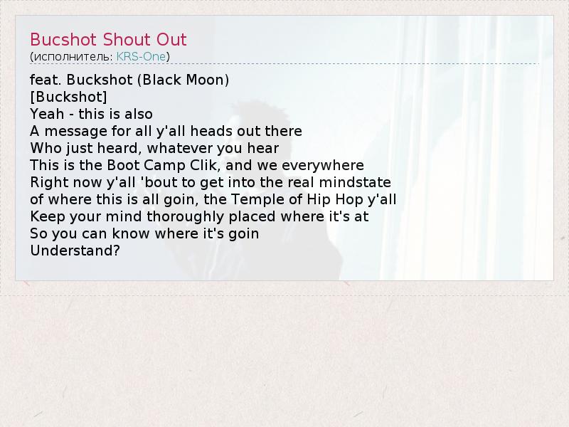 А как ты думаешь, о чем песня "Bucshot Shout Out" ?
