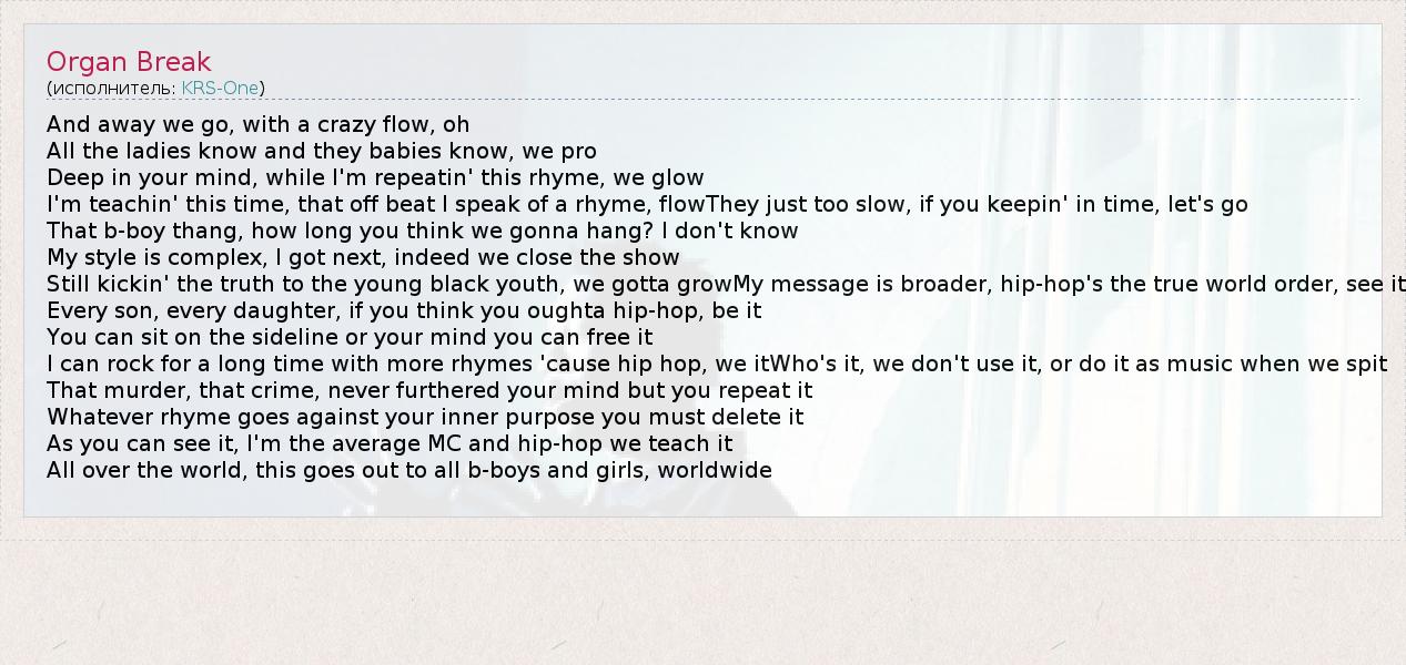 А как ты думаешь, о чем песня "Organ Break" ?