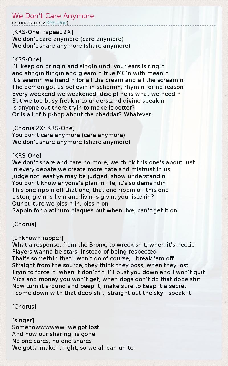 ГлавнаяИсполнителиKRS-OneWe Don't Care Anymore