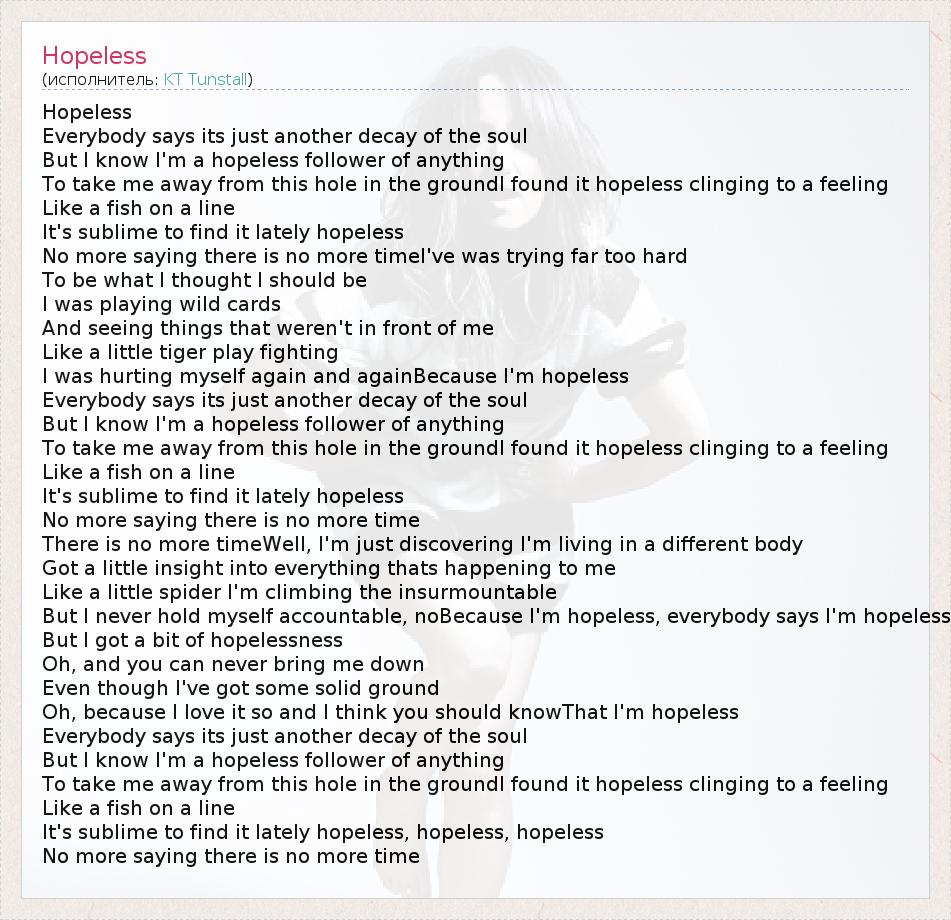 It's sublime to find it lately hopeless, hopeless, hopeless