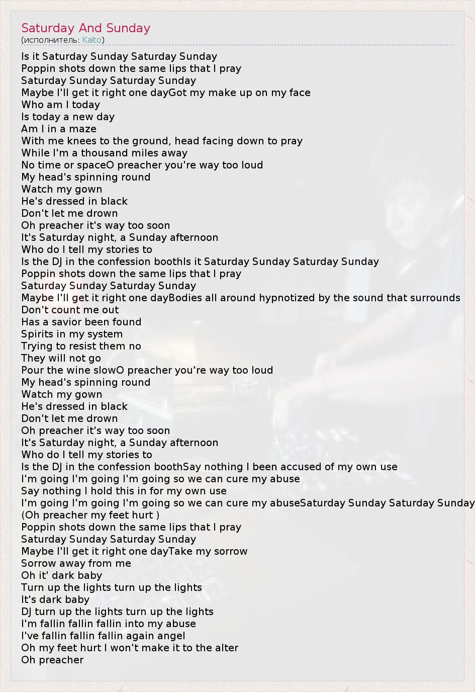 ГлавнаяИсполнителиKaitoSaturday And Sunday