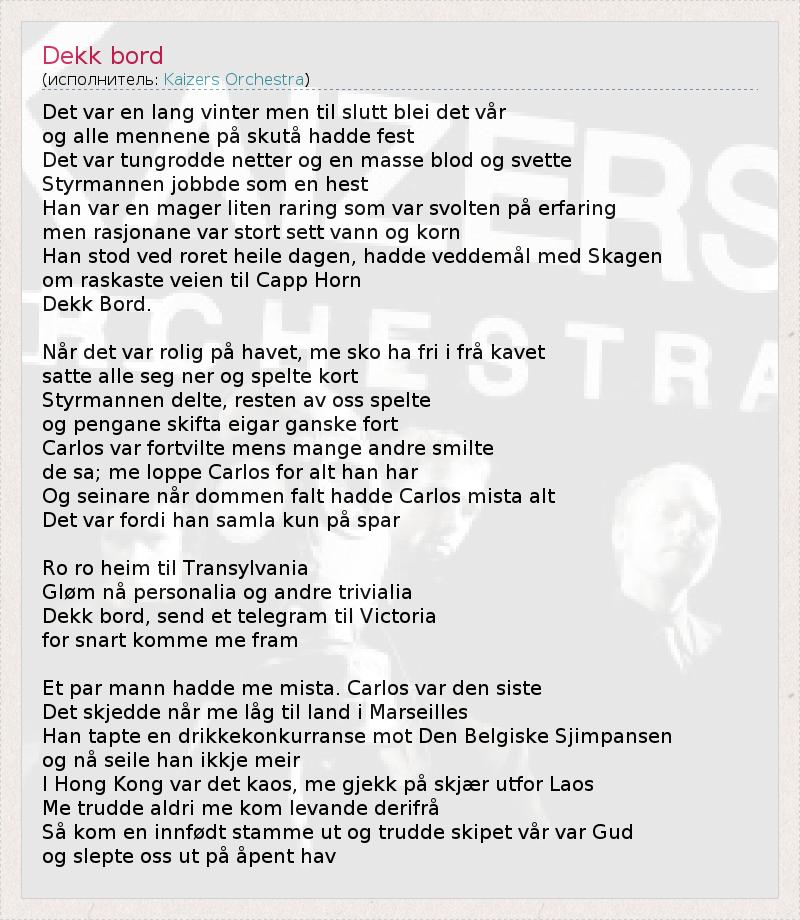 А как ты думаешь, о чем песня "Dekk bord" ?