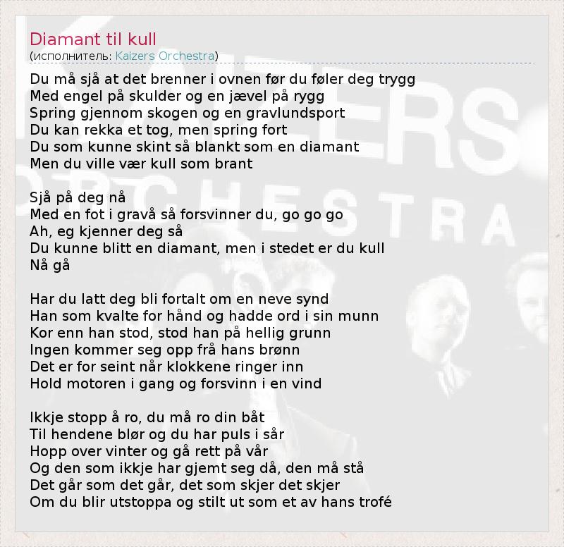 А как ты думаешь, о чем песня "Diamant til kull" ?