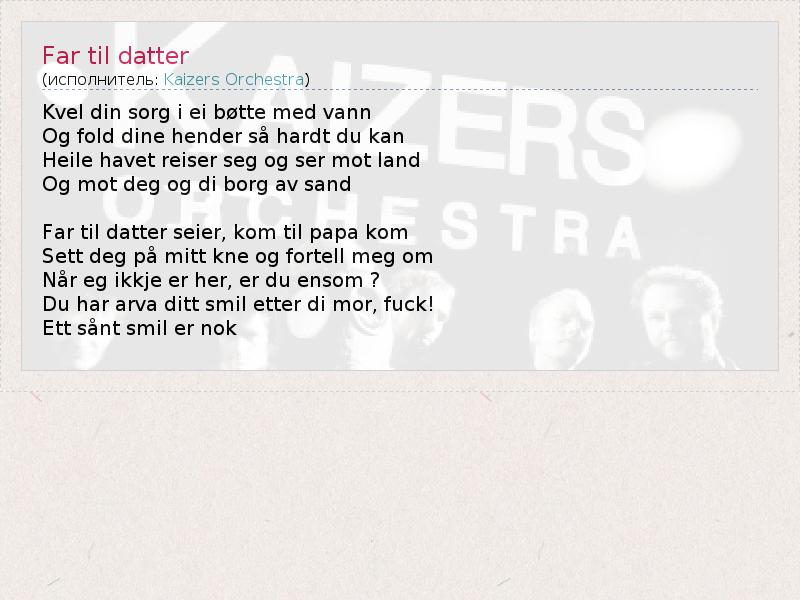 А как ты думаешь, о чем песня "Far til datter" ?