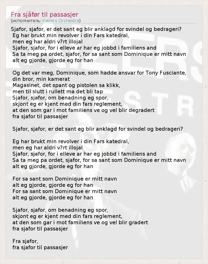 А как ты думаешь, о чем песня "Fra sjåfør til passasjer" ?