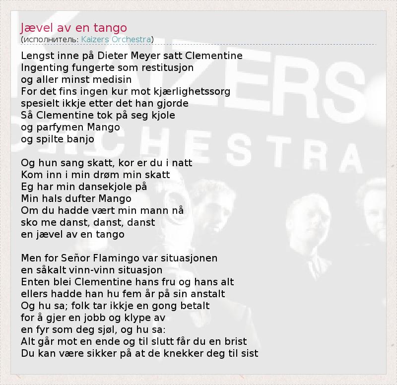 А как ты думаешь, о чем песня "Jævel av en tango" ?