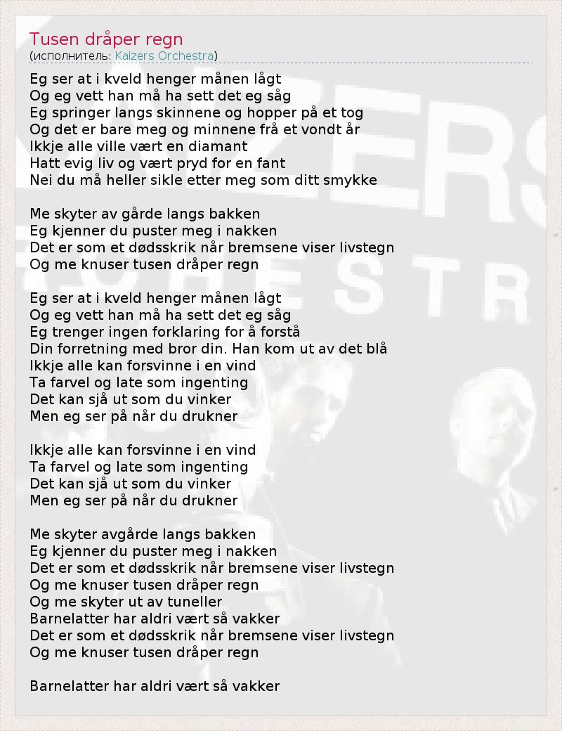 А как ты думаешь, о чем песня "Tusen dråper regn" ?