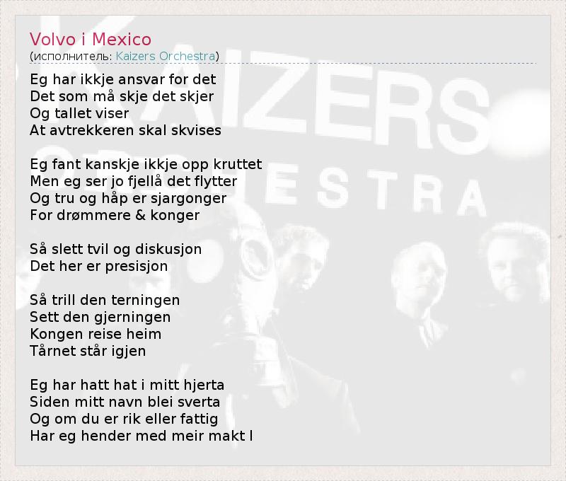 А как ты думаешь, о чем песня "Volvo i Mexico" ?