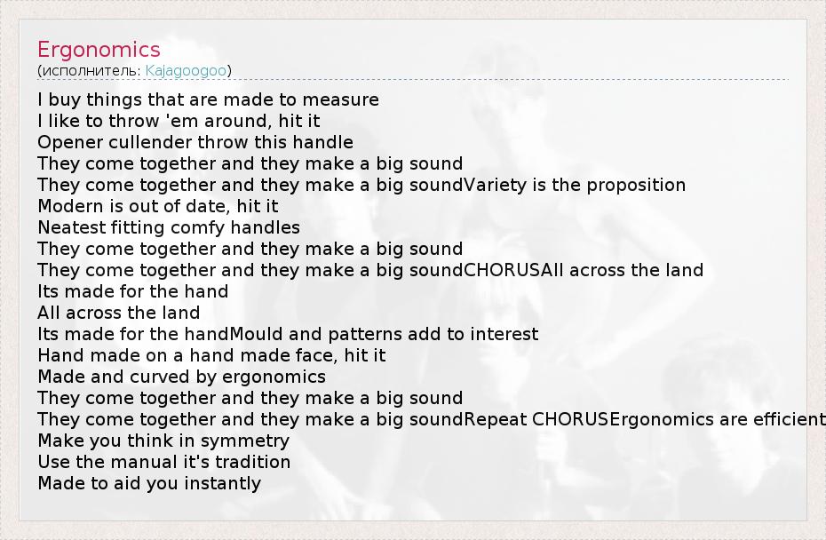 А как ты думаешь, о чем песня "Ergonomics" ?