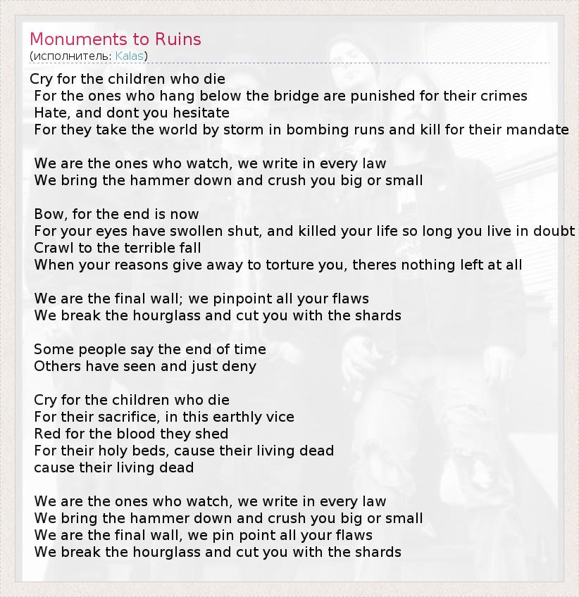 А как ты думаешь, о чем песня "Monuments to Ruins" ?