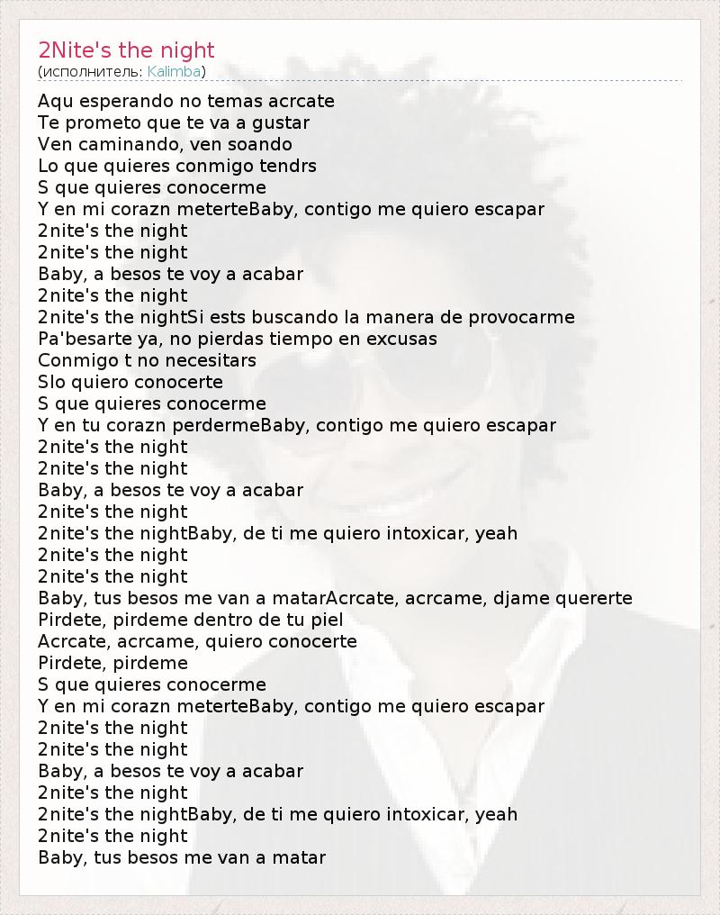 А как ты думаешь, о чем песня "2Nite's the night" ?
