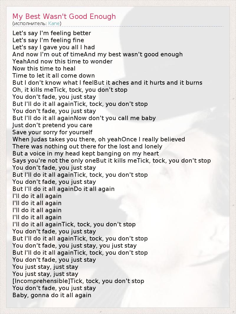 А как ты думаешь, о чем песня "My Best Wasn't Good Enough" ?