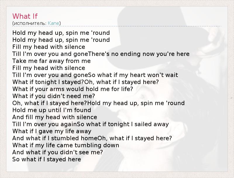 Oh, what if I stayed here?Hold my head up, spin me 'round