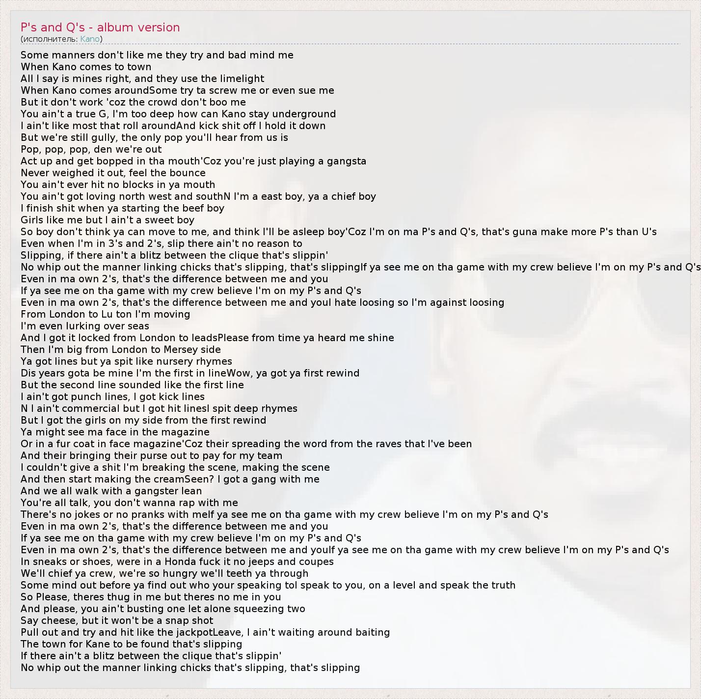 ГлавнаяИсполнителиKanoP's and Q's - album version