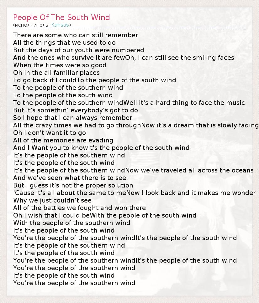 And I Want you to knowIt's the people of the south wind